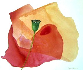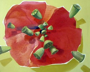 Ce n'est donc plus de la peinture figurative, mais pas encore vraiment de l’abstrait…  d'ailleurs, pour faire bon poids bonne mesure, je peins en contrepoint un pistil de coquelicot, quelquefois où ça me chante.