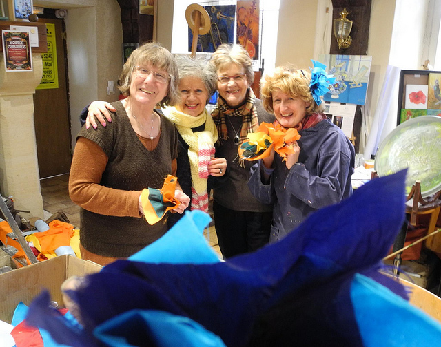 Marie-Christine Blouin, animatrice bénévole, réalise des milliers de fleurs avec plaisir des résidents de cet ORPEA de Saint Clair sur Epte. L'équipe Authevernes expérimente la fabrication de fleurs pour le land art juin 2013.