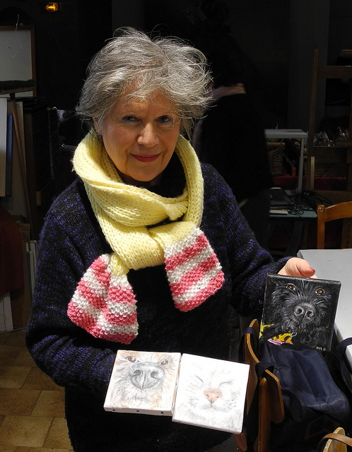 Voilà une sérieuse, aimable, intelligente et honnete pratiquante de peinture.  Elle signe chaque tableau avec un Carembar,