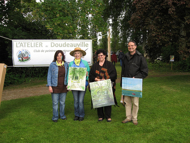 en valeur de patrimoines locaux : Présentations de quelques exemples d'autres jeux artuistiques, ceux de thèmes "Colombes de la paix" et Vikings, anniversaire 2011 création de la Normandie à Saint Clair sur Epte lors du traité de paix en 911 francs-Vikings Hommages des peintres de « L’Atelier du Pommier » à