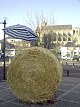 le salon, sur le parvis de la salle des fêtes de Gisors, j'avais installé un de mes ballots de paille, avec