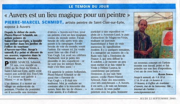l’office de tourisme d’Auvers-sur-Oise. Jusqu’à samedi, il y peint et discute