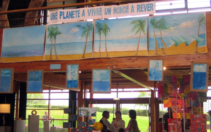 "Le grand rassemblement de tous les enfants (555 !!) ayant participé au projet est terminé... Les enfants présentaient des œuvres en arts plastiques, du théâtre, et des chansons... Ils se sont succédés à la galerie européenne de la forêt et du bois à Dompierre les Ormes (71) jeudi et vendredi avec leurs enseignants. Hier samedi, la galerie était ouverte au public et 420 personnes s'y sont rendues pendant tout l'après midi. Manque de chance, il a plu et nous n'avons pu faire les activités prévues dehors... Notre "travail collaboratif" a été très apprécié. J'avais mis un mot explicatif pour les visiteurs et tout le monde a trouvé que cette "interconnexion" entre un artiste et des enfants était vraiment très intéressante..." (extrait d'un courriel de l'institutrice, le 14 mai 2006) |