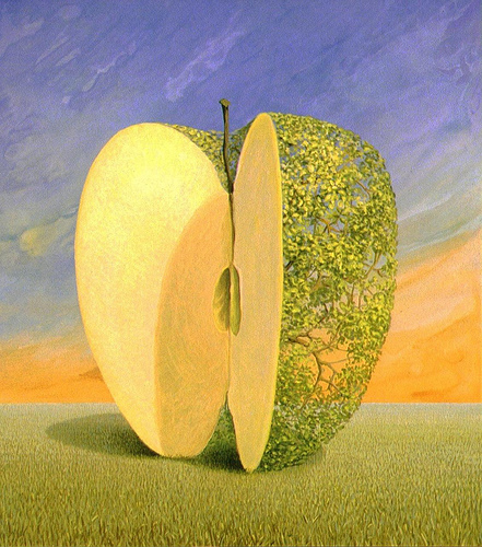 Sculpture végétale "Pomme Saint Clair, porte de la Normandie" Bretelle acces RN14 Saint Clair sur Epte en venant de Paris. |