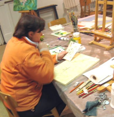Annie réfléchi beaucoup, prépare à la maison ses travaux à l'atelier du pommier. Elle ne peint pas n'importe quoi ! A suivre....