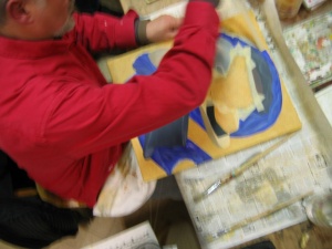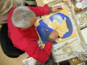 Ci-contre à gauche un ensemble de travaux similaires réalisés à l'atelier. Ici, Jean Pierre a pris comme modèles
