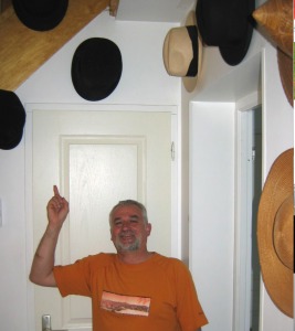 des chapeaux, casquettes, casque, et le lien fut cette écharpe de Touareg