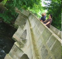 Si le parc du château est magnifiquement serein et bucolique, sur le pont d'Aveny on y peint, on y peint et on y passe dessous à la rame en bandes joyeuses de canoës filant si vite que l'on ne peut les saisir sur la toile. |