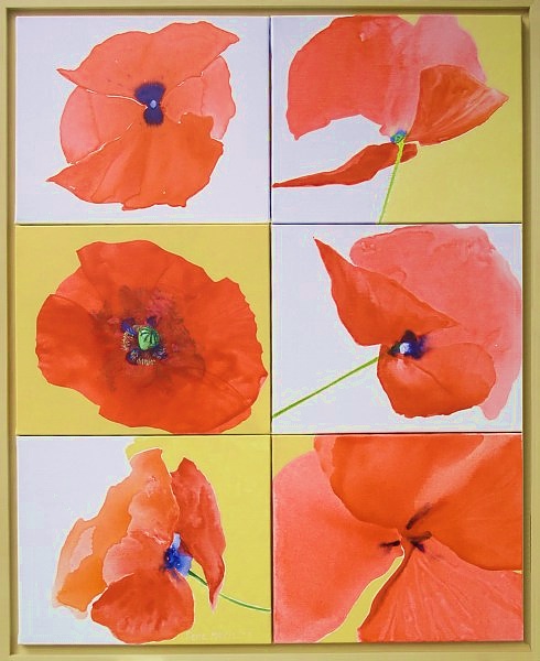 Jeux de Coquelicots, composition 3 Pierre Marcel Juin-juillet 2003,. Composition de six toiles,