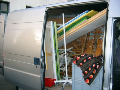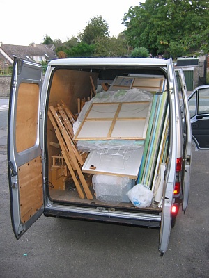 Je suis assez content de cette expérience, rendue possible par l'assistance désintéressée de Pascal Cambourg, directeur de la concession Citroën de Gisors (transport de mes peintures et chevalets). Si je n'avais pas eu cette aide inespérée, j'aurais du faire au moins trois ou quatre voyages avec ma voiture. (voir chargement folklorique en Septembre) |
