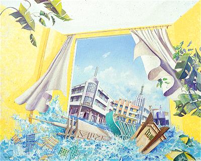 first painting, a joyful eruption of Art-Deco buildings in her freshly