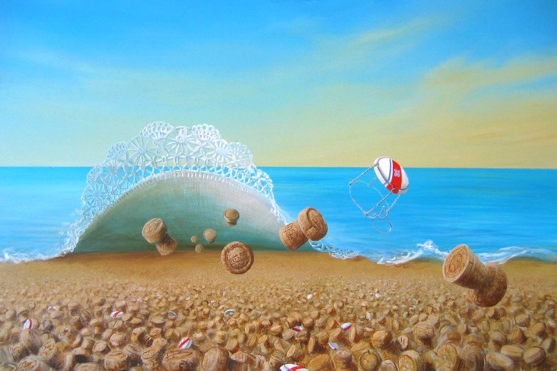 Guard painting day 2 : sand beach morphes to corks. It is still