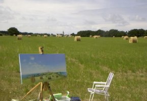 de blé du Vexin, avec chevalet, matériel et l'indispensable parasol.