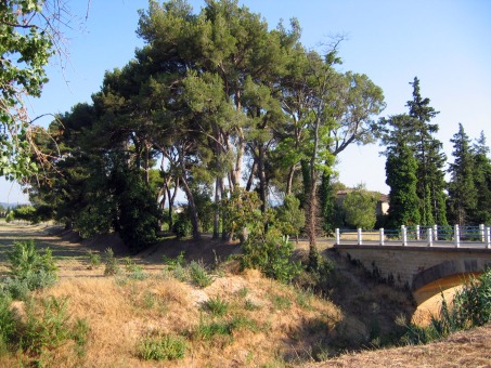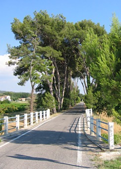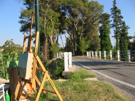 Le pont de Saint Pierre de Vassols offre un beau sujet de peinture : des arbres, une perspective, des lumières, assez peu de passage de voitures, on est tranquille pour peindre....